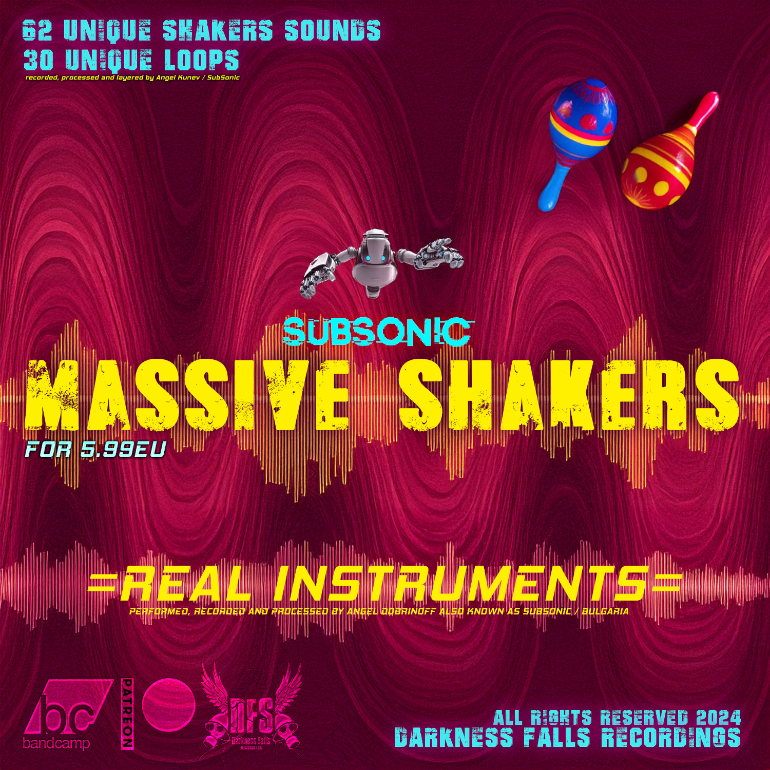 62 UNIQUE real, MASSIVE SHAKERS instrument sounds recorded processed in studio environment by Angel K also known as SUBSONIC.
